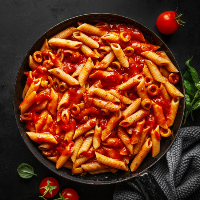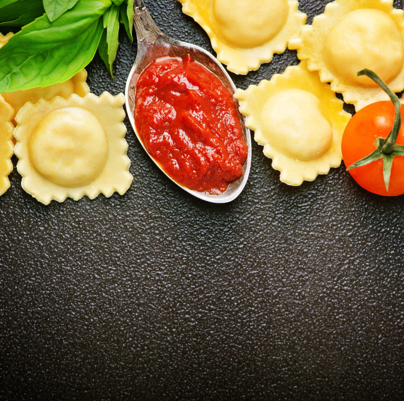 mit Meeresfrüchten, Petersilie, Tomatensoße, Knoblauch (pikant